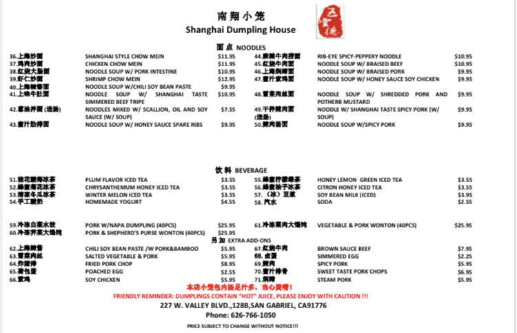Welcome to Shanghai Dumpling House, a gem nestled in the heart of San Gabriel, CA. This delightful dumpling restaurant transports you straight to Shanghai with its authentic flavors and warm atmosphere. From the moment you step inside, the inviting aroma of freshly steamed dumplings and savory dishes captivates your senses, promising a delightful culinary adventure.