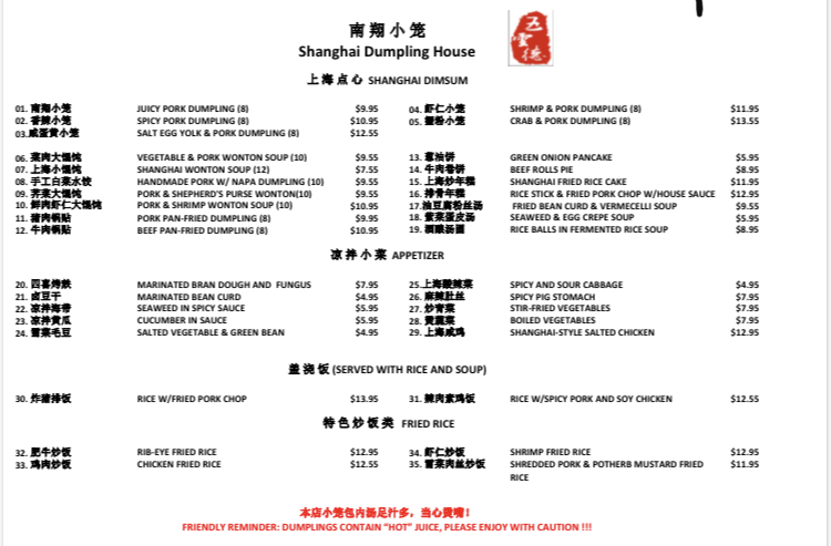 As you peruse the menu, you'll discover a treasure trove of Shanghai-style delicacies, including their renowned xiao long bao (soup dumplings) that burst with rich, savory broth with each bite. Customers rave about these juicy morsels, with one saying they felt like they were tasting home for the first time, a sentiment echoed by many who have dined here. The Pork & napa dumplings and Spicy pork dumplings are also standout choices that showcase the house's dedication to crafting dishes that are both flavorful and comforting.